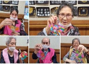[재활] 치유정원 대체 프로그램-핑거니팅-목도리 만들기 마무리 및 기념사진 촬영