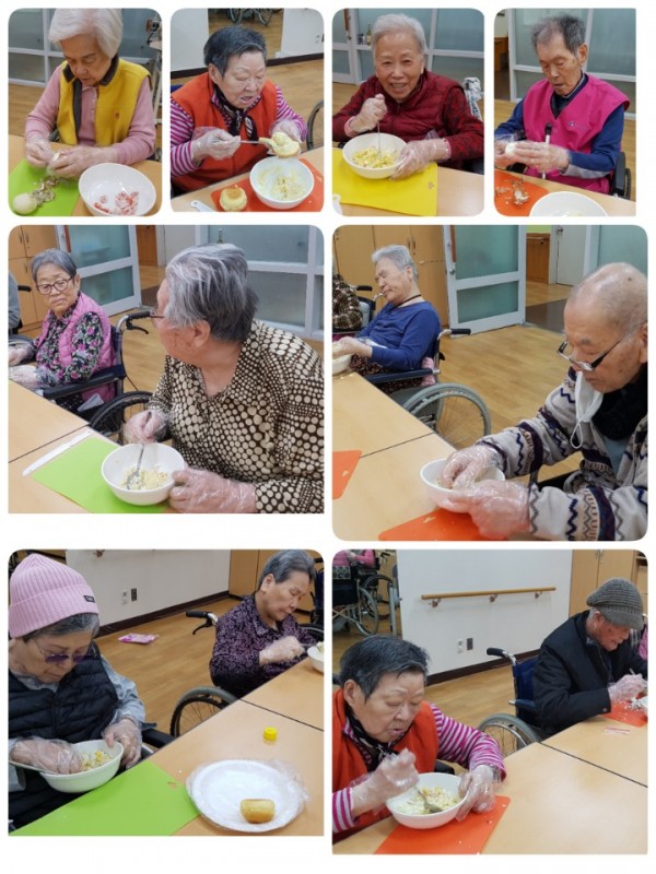 어르신들와 계란과 감자를 이용해서 만드는 샌드위치만들기를 진행하였습니다.